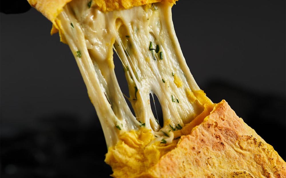 Сыр моцарелла, сыр дорблю, сыр пармезан, сыр фета, помидоры, зелень, фирменный соус на основе йогурта.